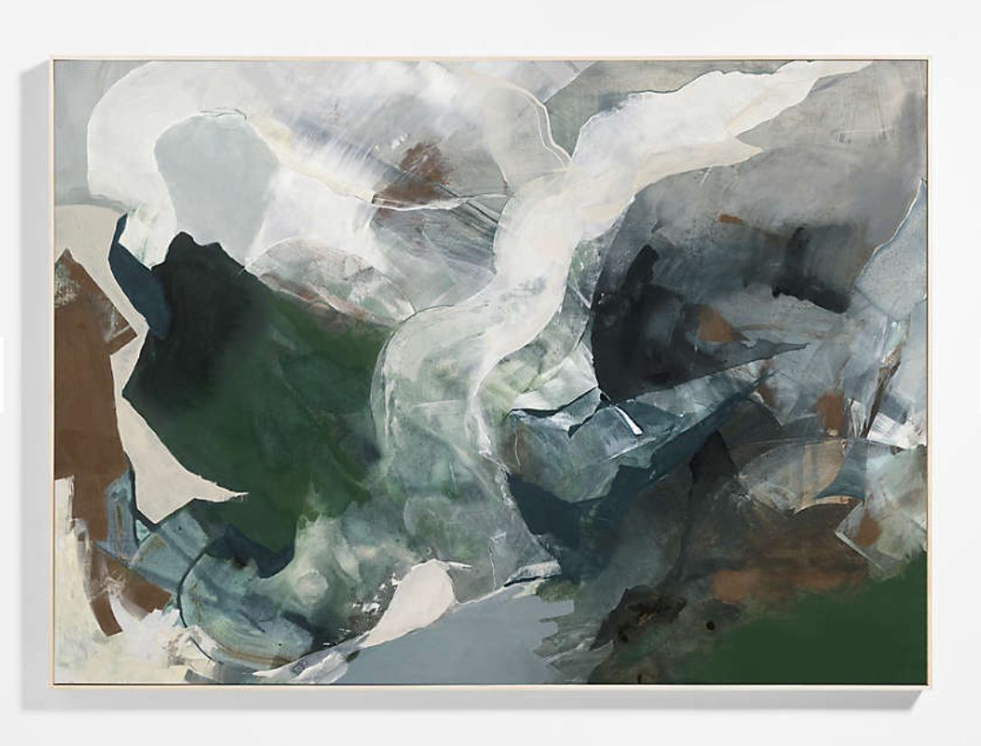 Esta obra abstrata explora o encontro entre força e delicadeza, revelando formas orgânicas que parecem fluir e se dissolver no tempo.